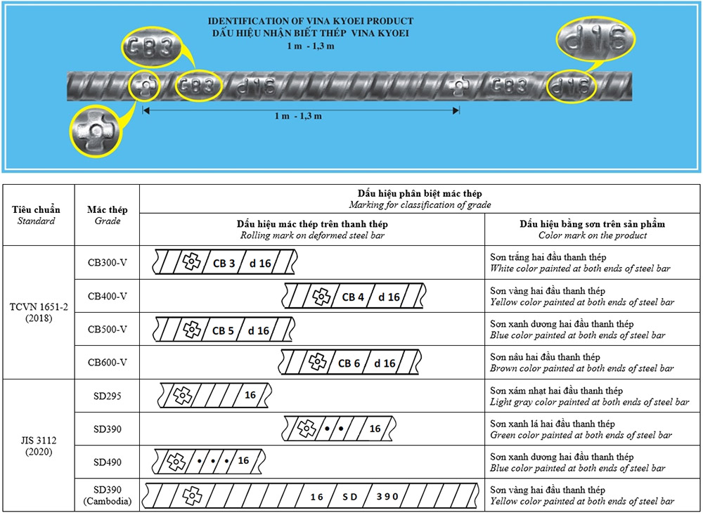Để nhận biết đúng là thép gân của Vina Kyoei xin chú ý các điểm sau: