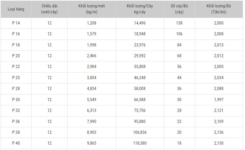 Theo JIS G 3101 : SS 300, SS 400 : P14~P40 ; Theo JIS G 3112 : SR 295; Theo JIS G 4051 : S4SC